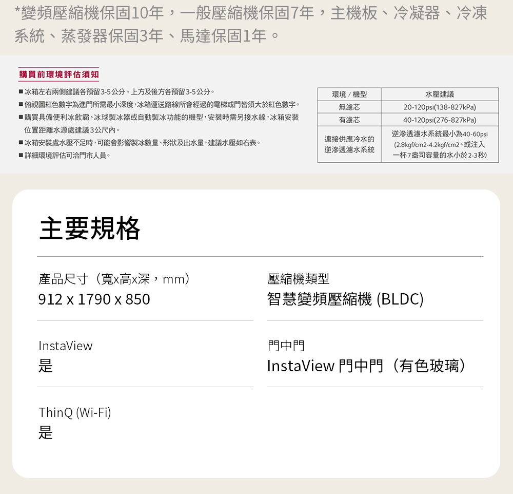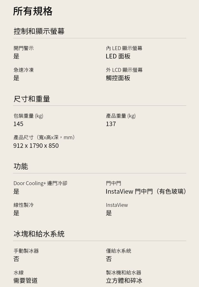 產品尺寸(寬x高x深,mm) 912 x 1790 x 850