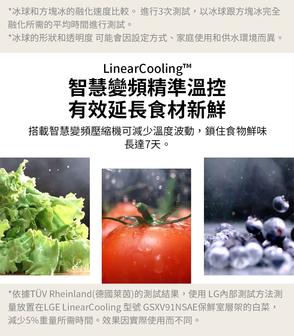• 直驅變頻壓縮機精準溫控,延長7天保鮮