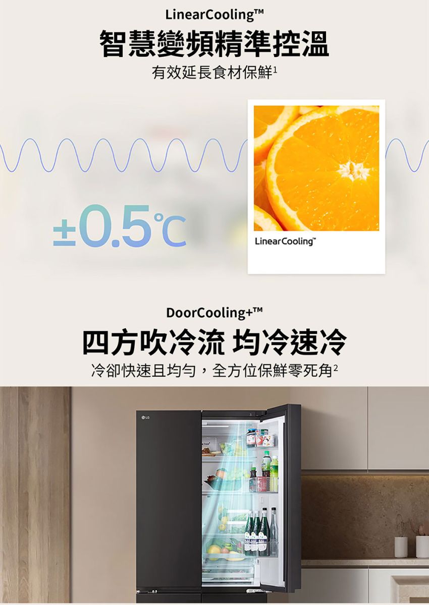 • LinearCooling™ 智慧變頻科技 精準溫控,延長7天保鮮