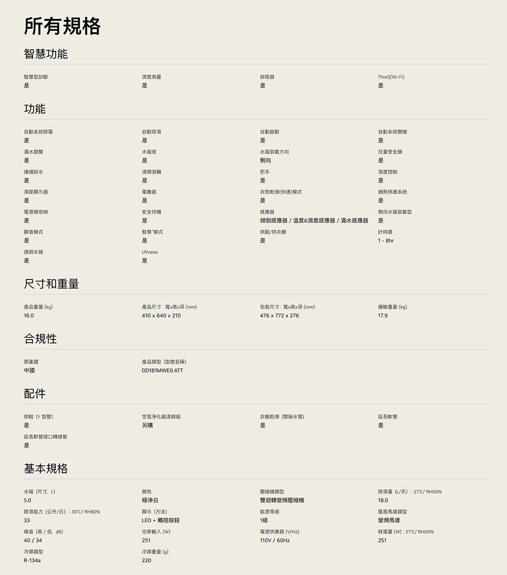 除濕容量/日 (公升):18