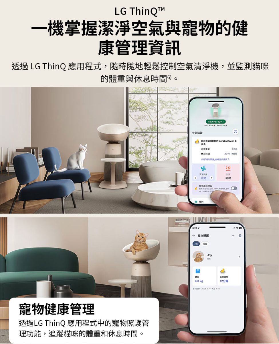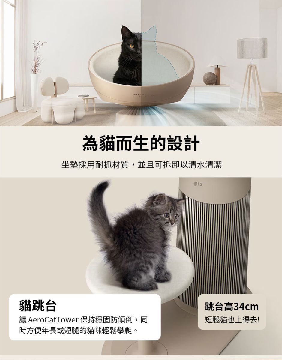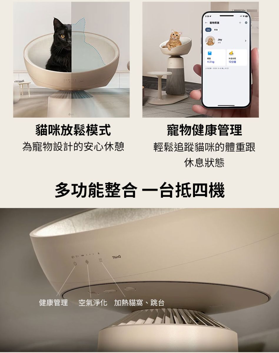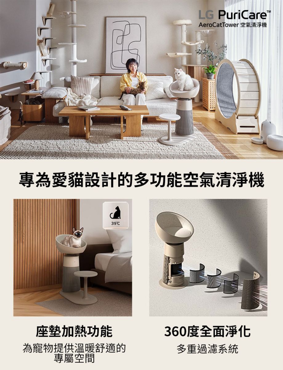 ※以下規格如有錯誤,依原廠公佈資料為準。品名:【LG 樂金】喵太座AeroCatTower寵物空氣清淨機(智慧加熱貓窩/寵物秤/AS251CBZ0)